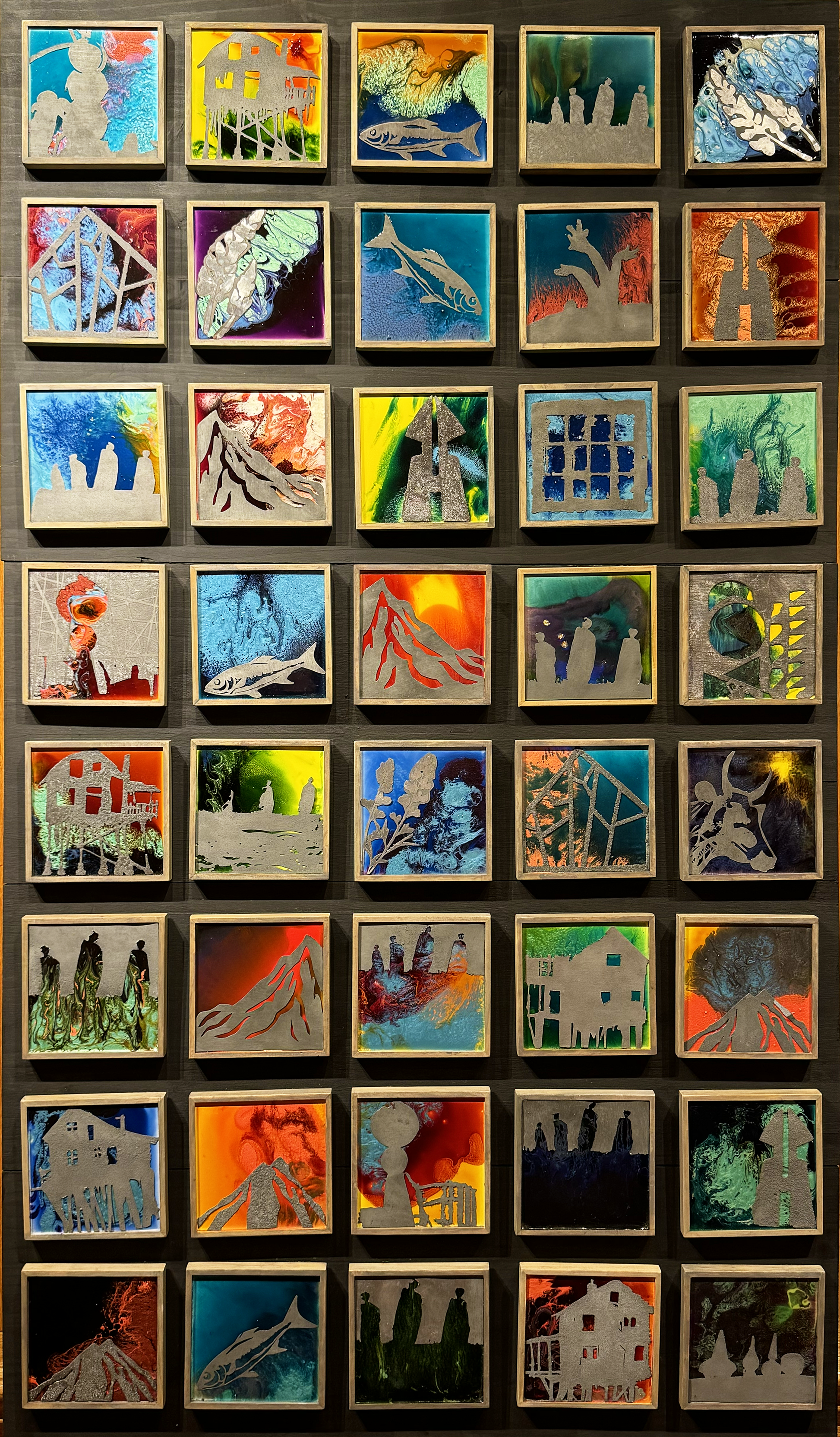 There are 25 of these, all one of a kind, $95 each. Please click numbers 1-25 to view each of the designs available for purchase. 6" square.