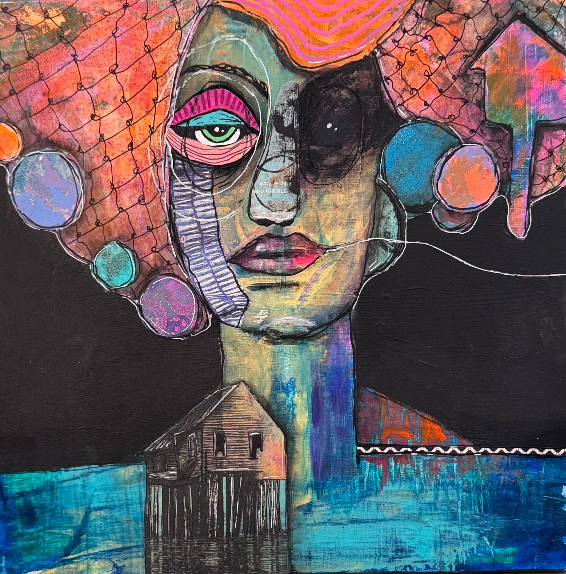 Mixed media on wood