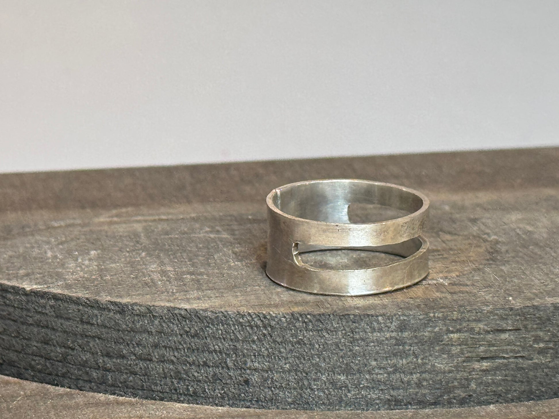 Sterling ring that appears to be two evenly-spaced rings when worn. Size 7.