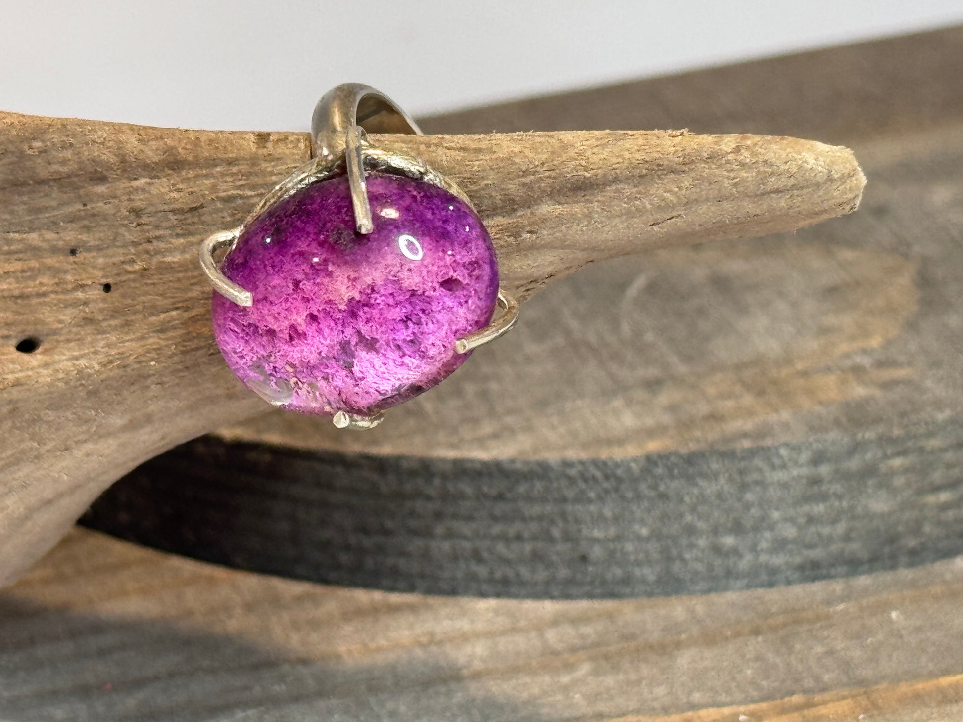 Beautiful lodolite stone on sterling silver ring with prong setting. Adjustable size.